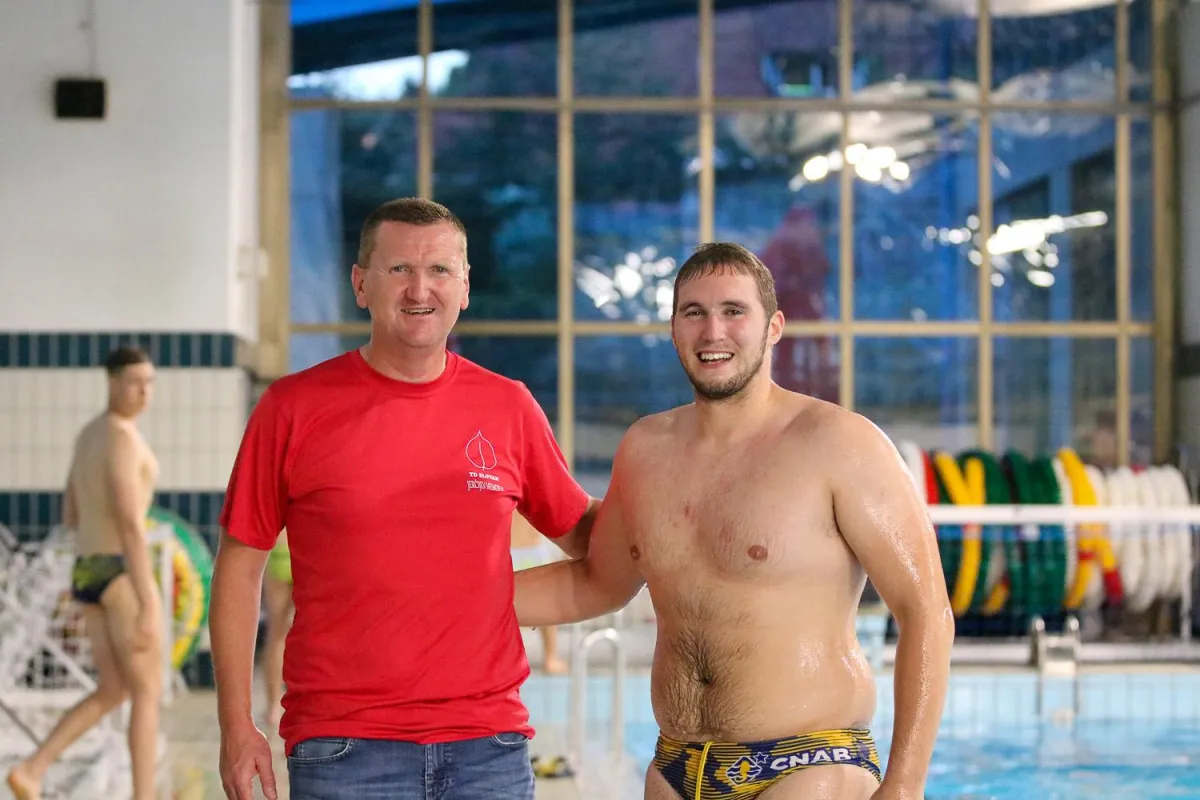 naslovnica – predsednik Zveze vaterpolskih društev Slovenije (ZVDS) Boštjan Tušar z Markom Blažićem (Primorje EB) / fotografije Aleksander Sokler